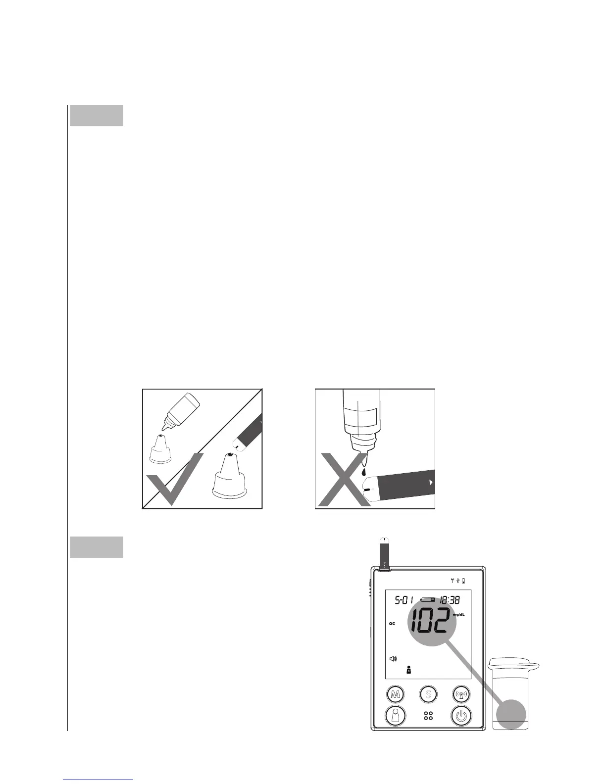 Hold the monitor to move the absorbent hole of test strip to touch the