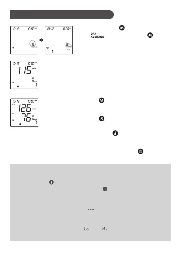 • The blood glucose test results of “ ” and “ ” will NOT be calculated in the