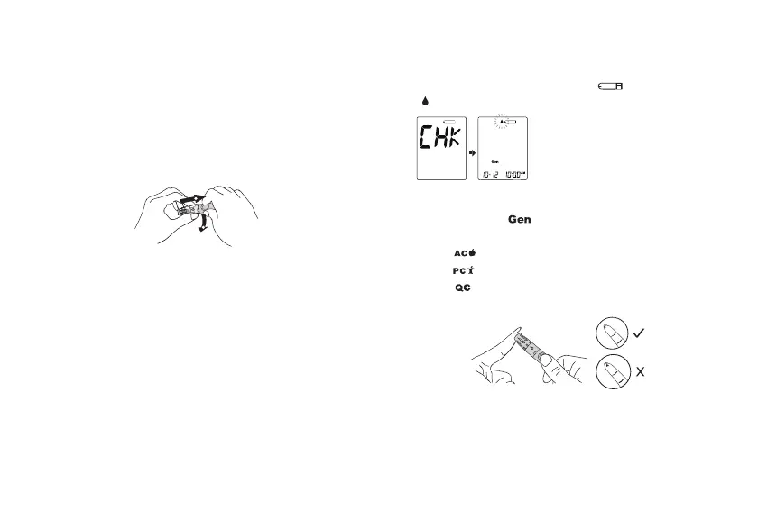 the device to display the test strip “ “ and blood drop