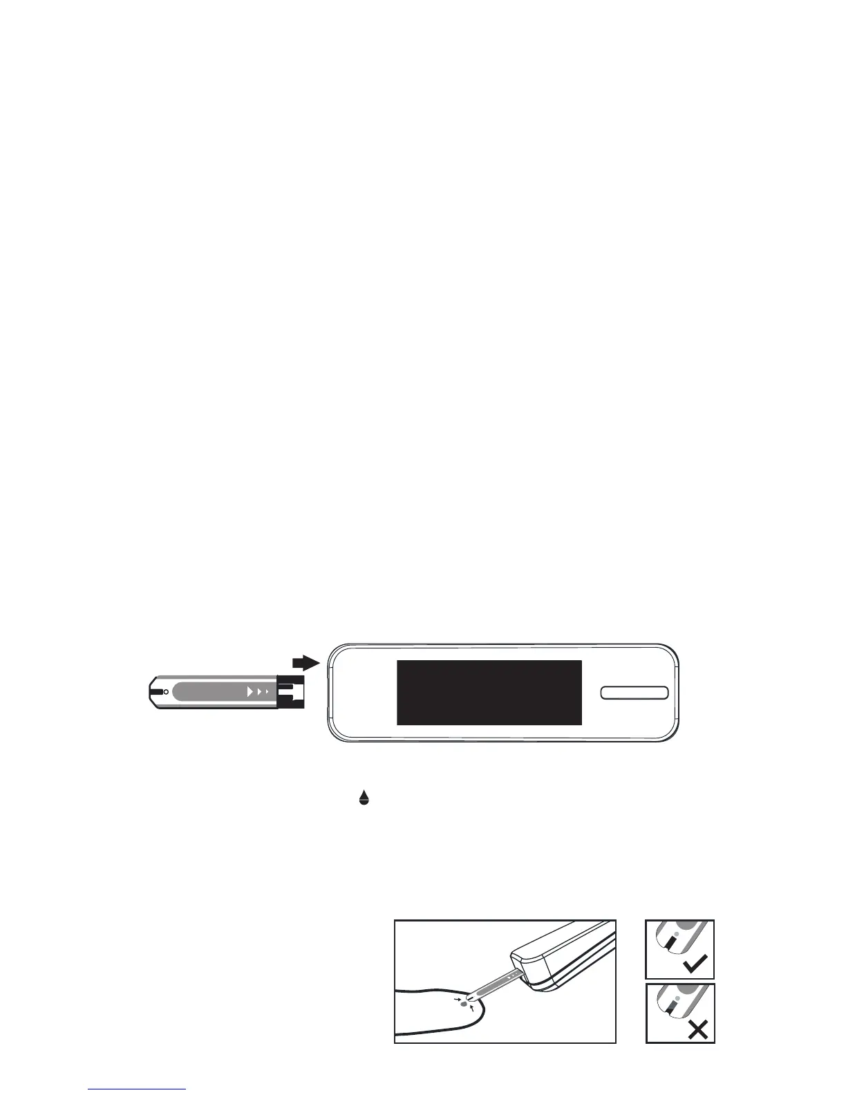 the vial cap. Hold the meter to move the absorbent hole of the test strip to