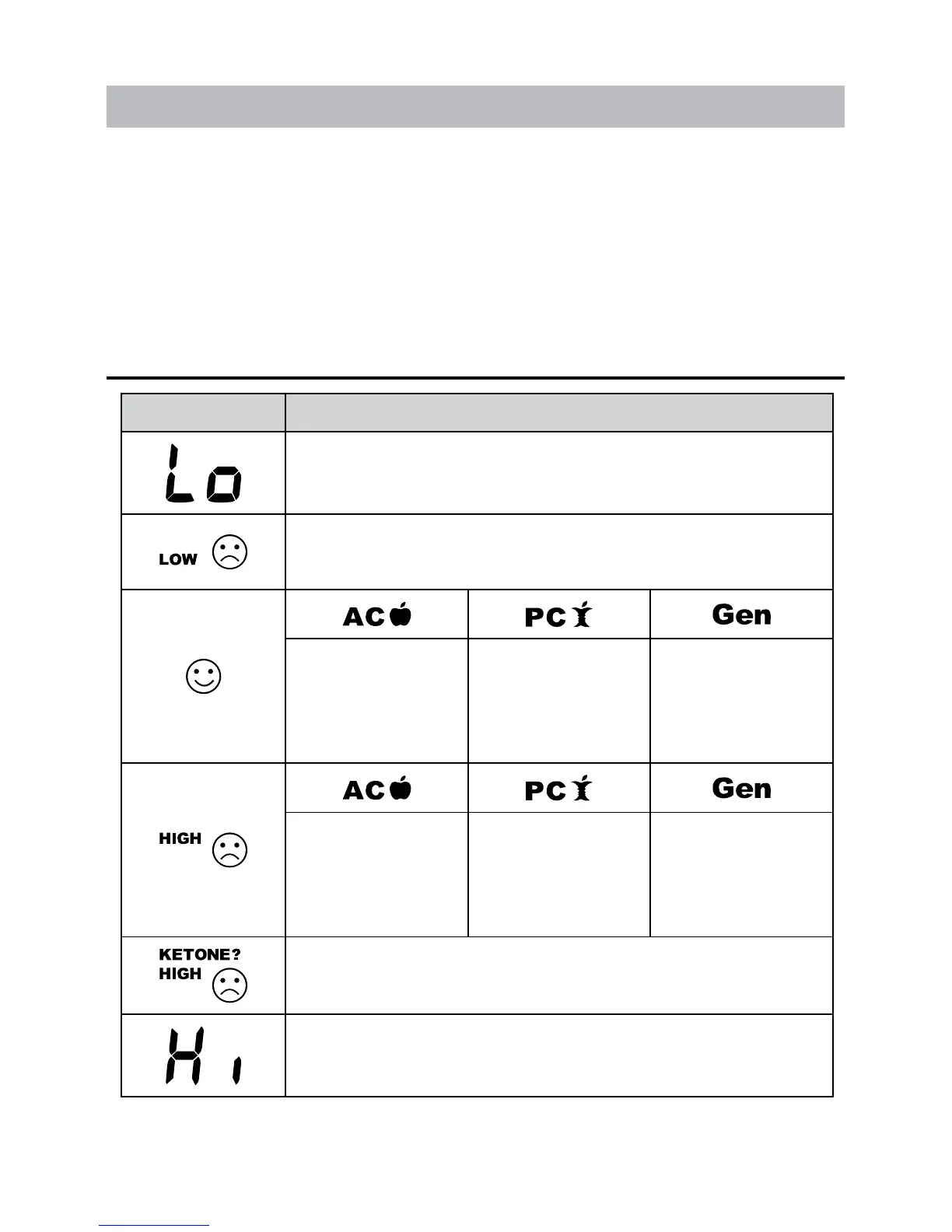 Blinks when glucose ≥ 240 mg/dL (13.3 mmol/L)
