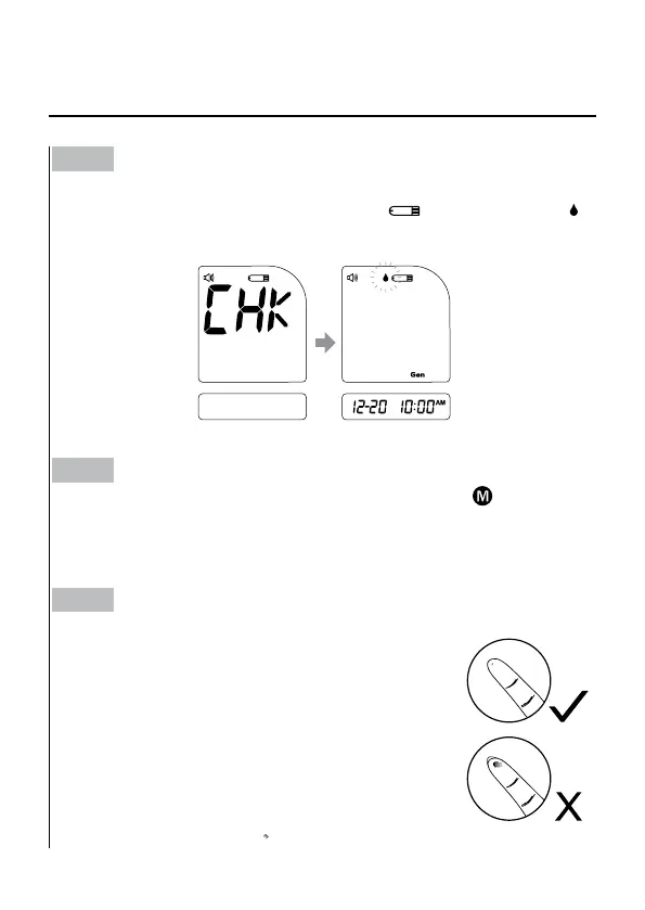 Insert the test strip to turn on the meter.