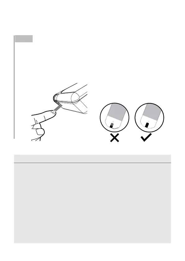 • No oprima la zona de punción contra la tira reactiva ni trate de aplicar una
