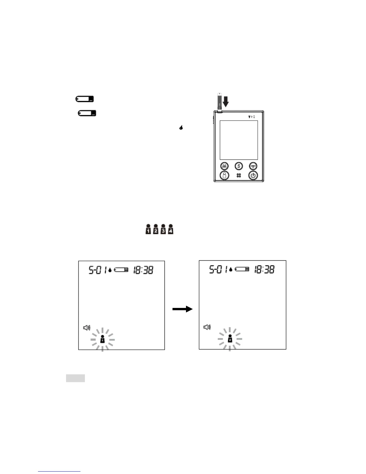 button to select the user (numbers from1 to 4) whose test reading