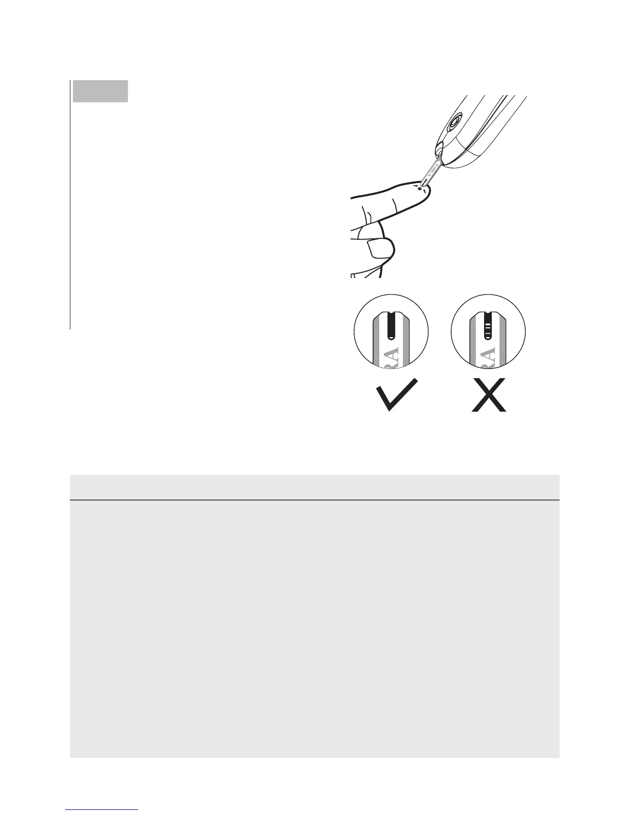 • No oprima la zona de punción contra la tira reactiva ni trate de aplicar una