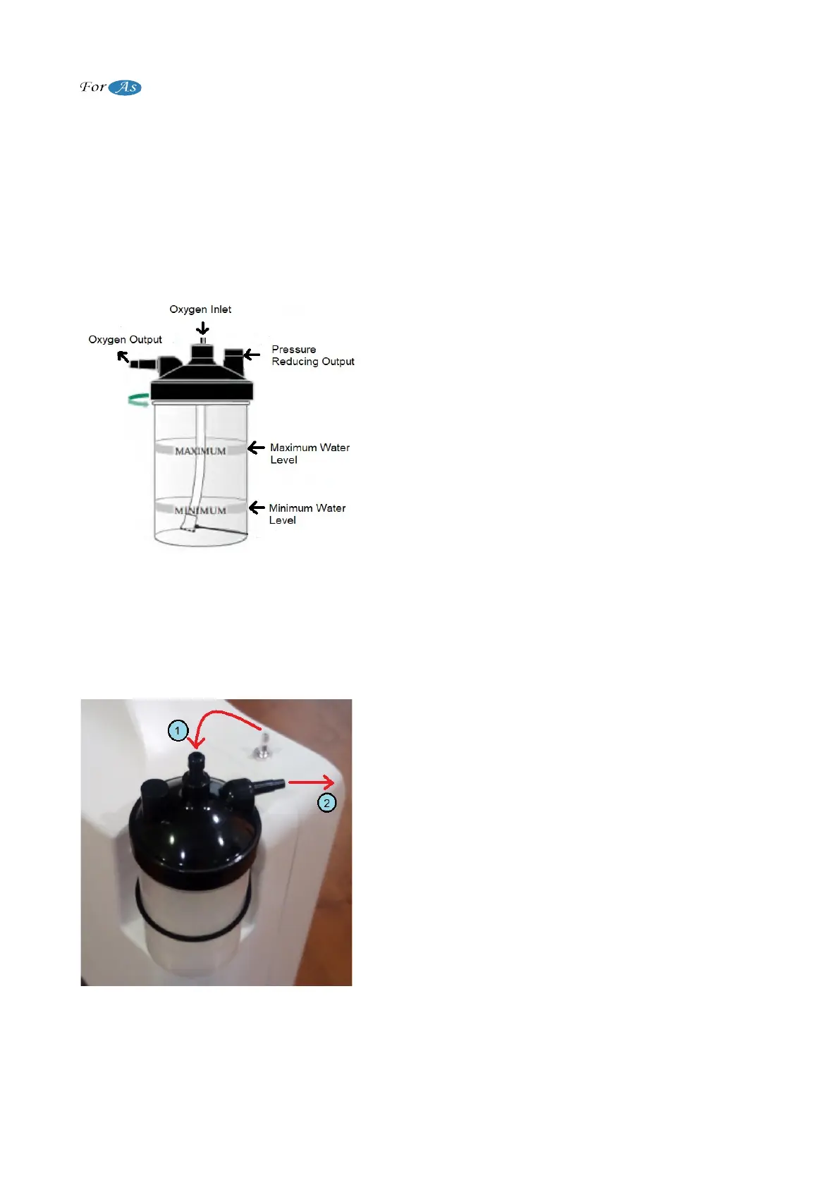 3. Attach the recommended Oxygen Concentrator accessories (Humidifier Bottle and