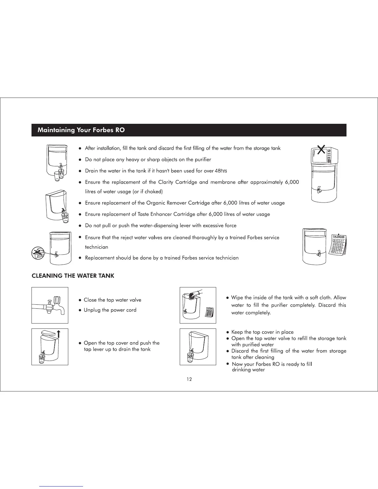 Forbes RO - Maintaining Your Forbes RO; Cleaning the Water Tank