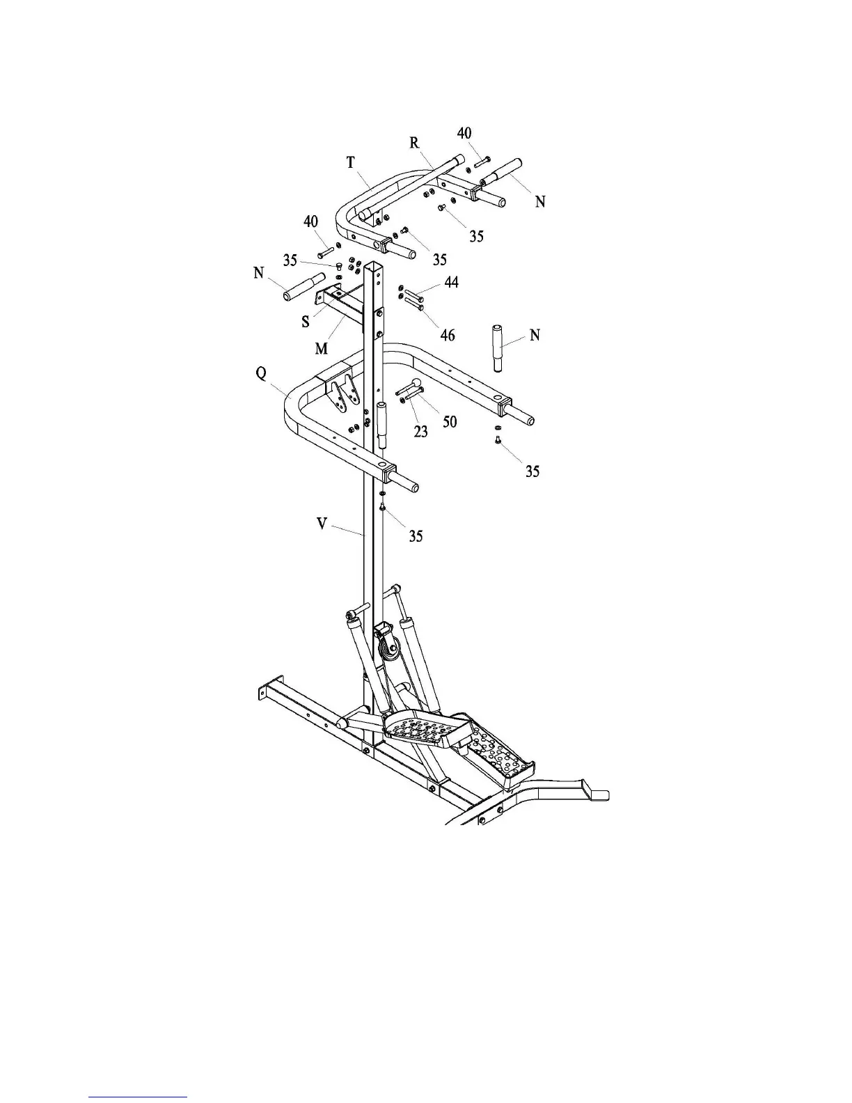 6. Attach part (N) to part (Q) and part (T) with bolt assembly (35).