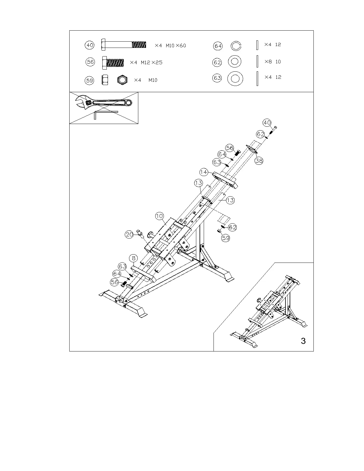 M10x60 Bolts (40), Washers (62) and M10 Nuts (59)