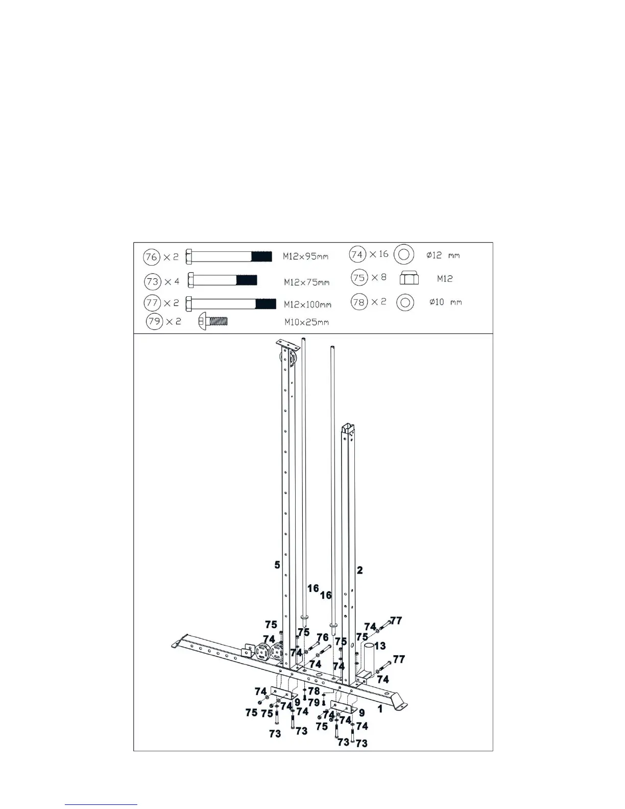 holder(13#)together, with the same way in A and using 1 pc L shape bracket(9#),2pcs M12*75 Hex bolt(73#),2pcs