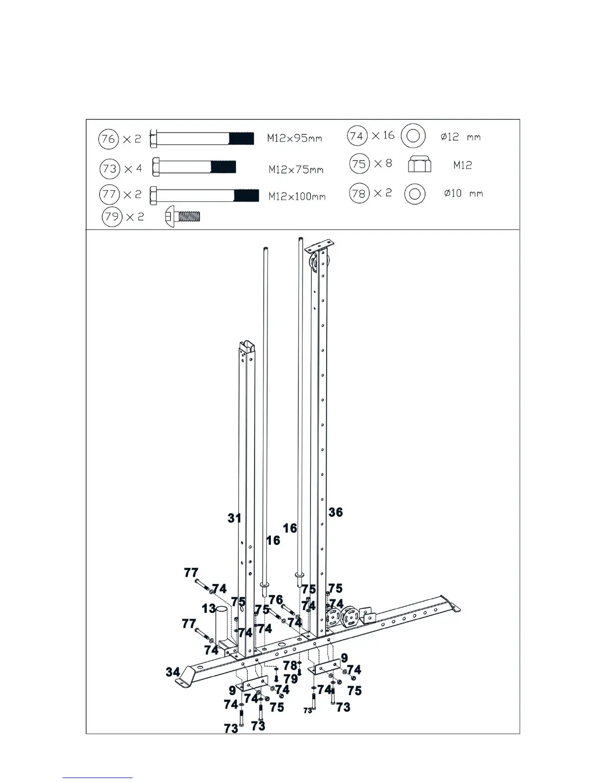 Using the same way in Step 1 to install the left rear vertical frame (31#),left center vertical frame(36#) and 2 pcs