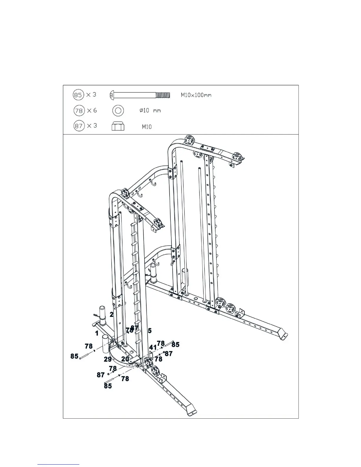 Attach the weight stack cover bracket (29#) as the diagram shows , secure it with the triangle bracket(20#) using 2