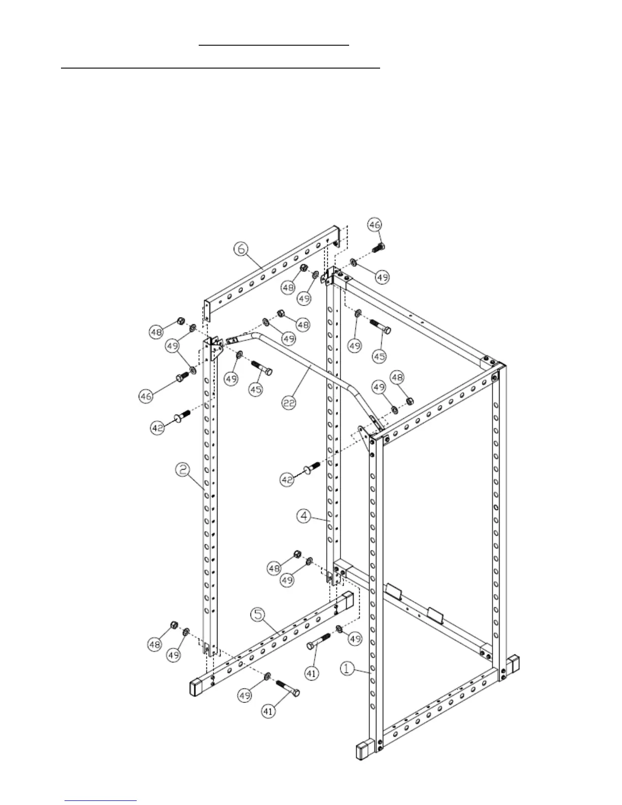4. Attach the CHIN-UP BAR (22) using two CARRIAGE BOLT M10X40 (42), two WASHER10 (49), two AIRCRAFT NUT M10