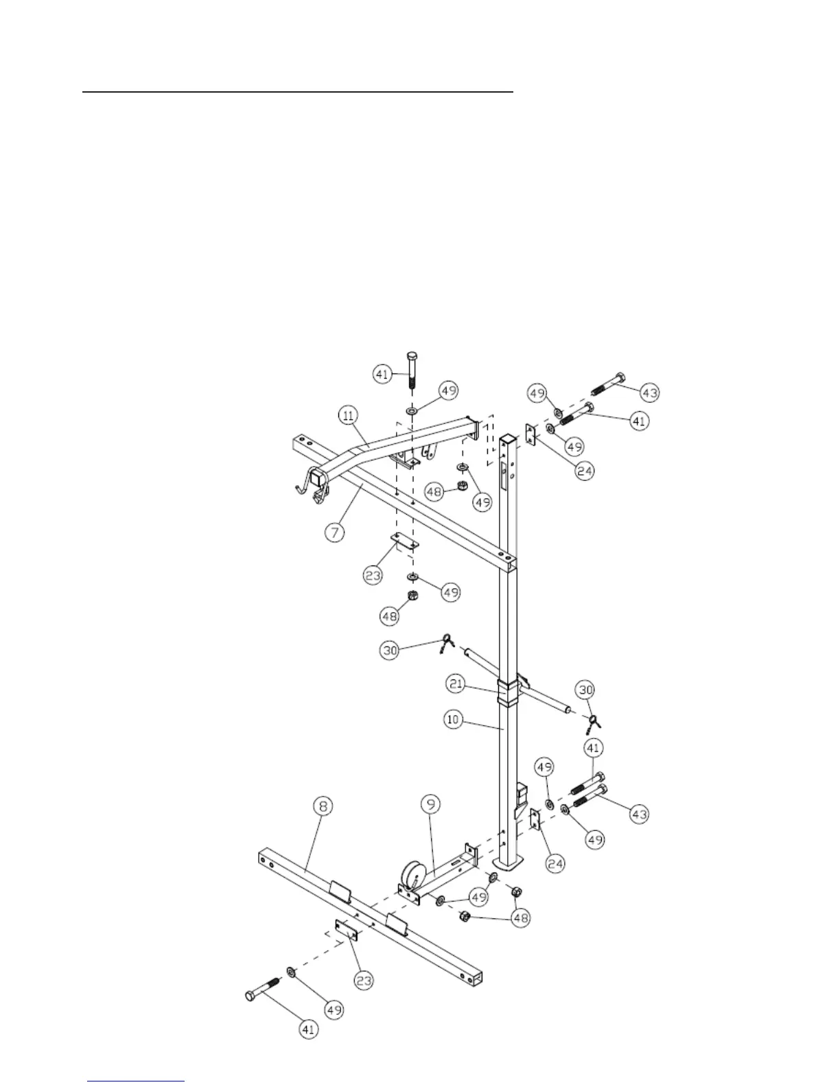 (24). In the upper hole use a HEX BOLT M10X60 (43) and a WASHER10 (49). In the lower hole use a HEX BOLT M10X65