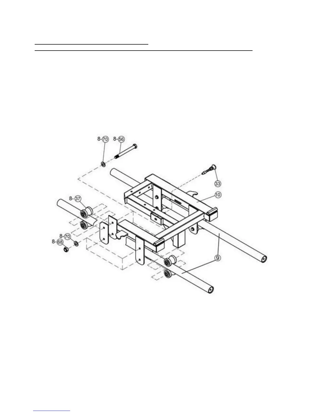 1. Sliding Frame Assembly: Position Rollers (Key #37) on top and below of the Guide Rods (Key