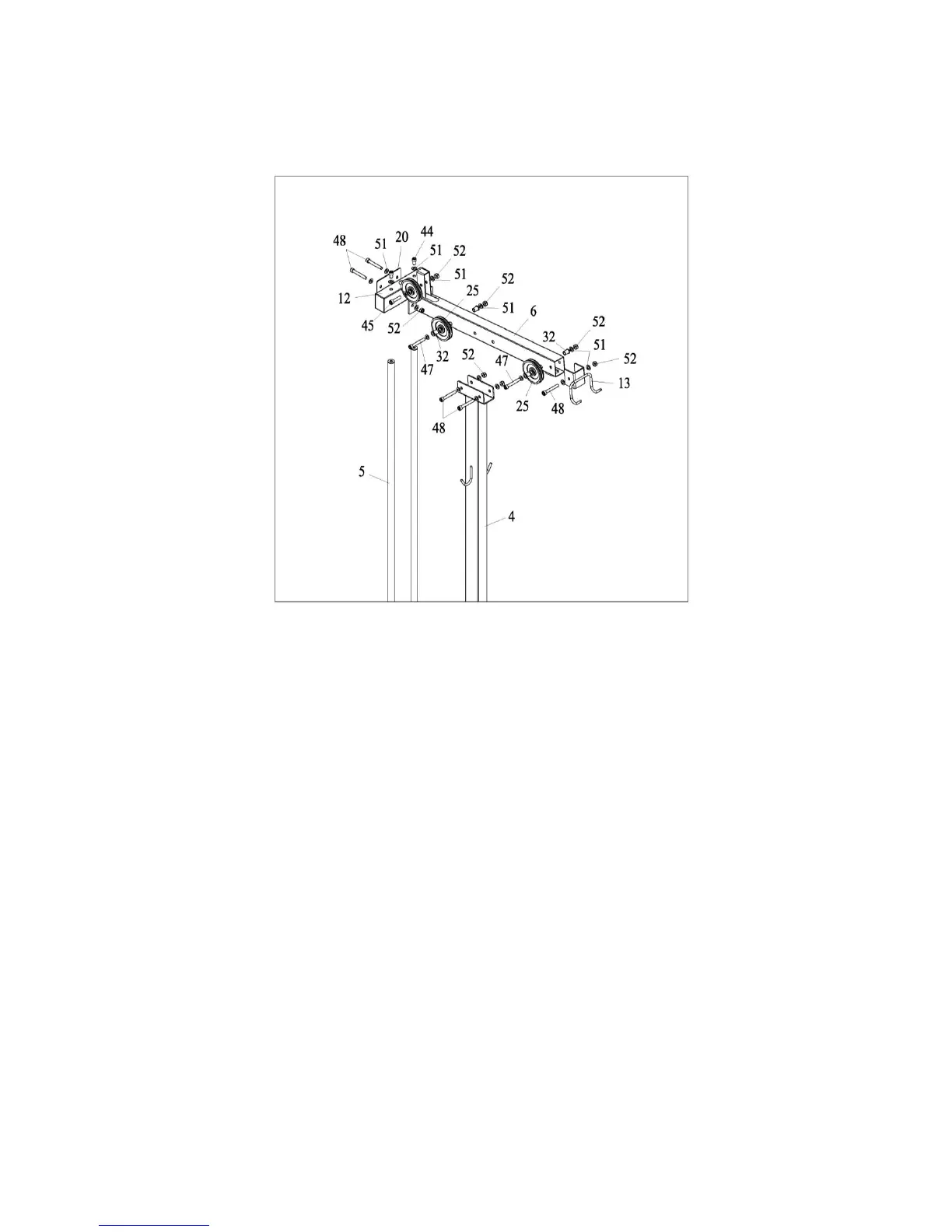 5.Attach top cross beam (12) to hard chromium shaft (5) with screws M10*25 (44) and washers 10