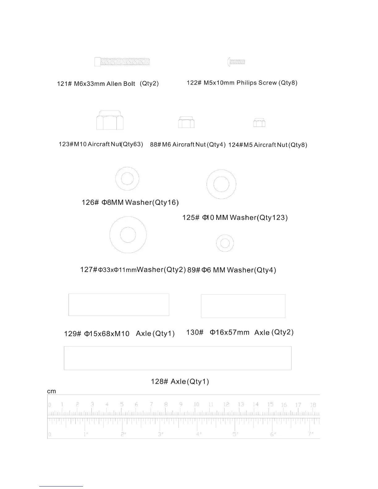 NOTE: The following parts are not drawn to scale. Please use your own ruler to measure the size.