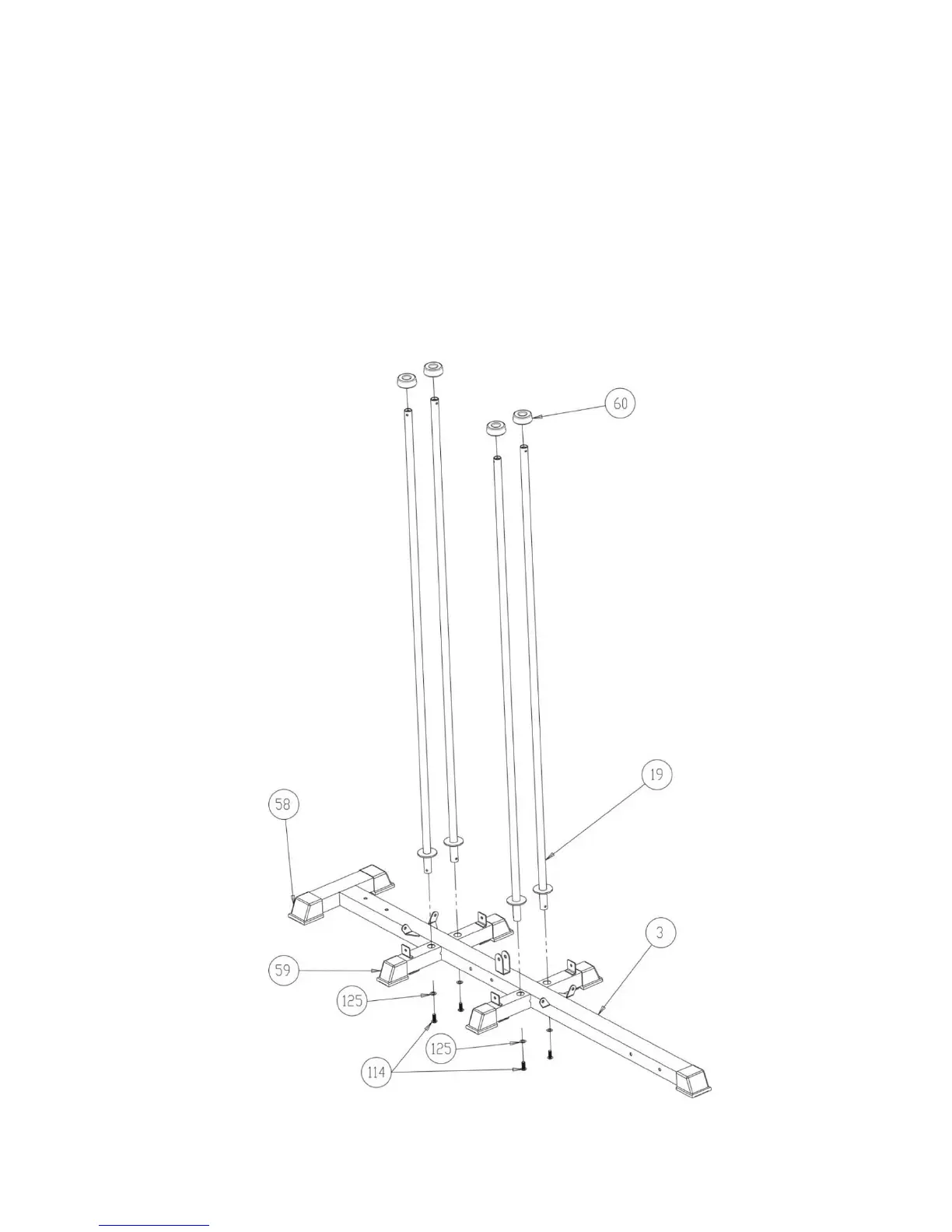 A. Insert four Guide Rods (#19) into the holes on the Main Base Frame. Secure each of them with one