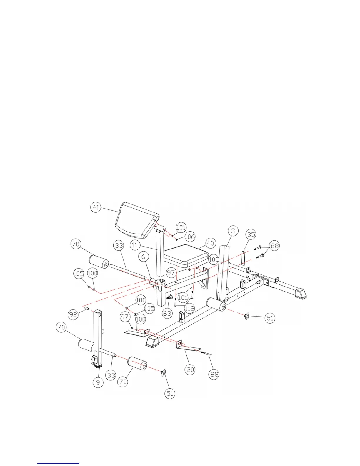 Pad (41#) onto the Arm Curl Pad Support(11#) and Secure them with 2pcs M8*16