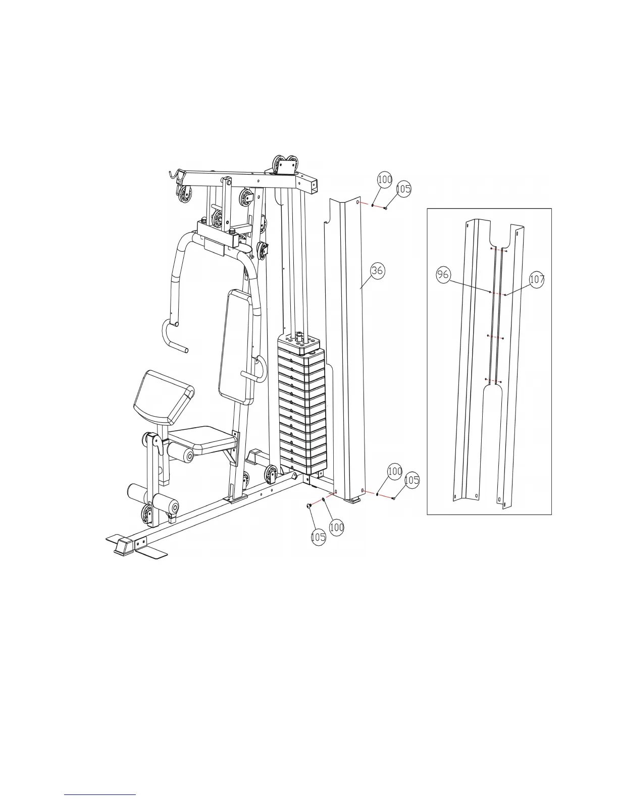 A) Attach the left & Right Weight stack Cover(36&37) together, and Secure them