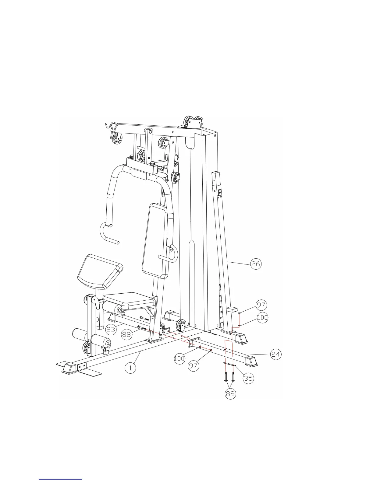 Frame(1#), And secure them with two pcs M10*90 Carriage Bolt(88#),two pcs Ø 10