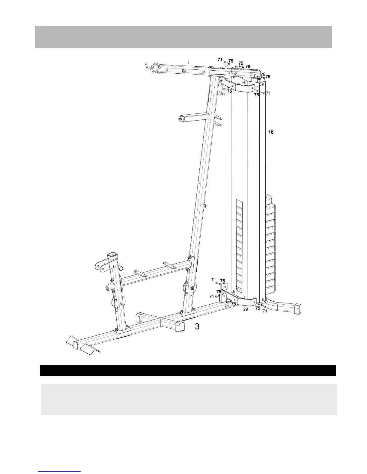 Attach the Weight Stack Cover16# and 2pcs Weight stack Bracket(29#) as the diagram show,