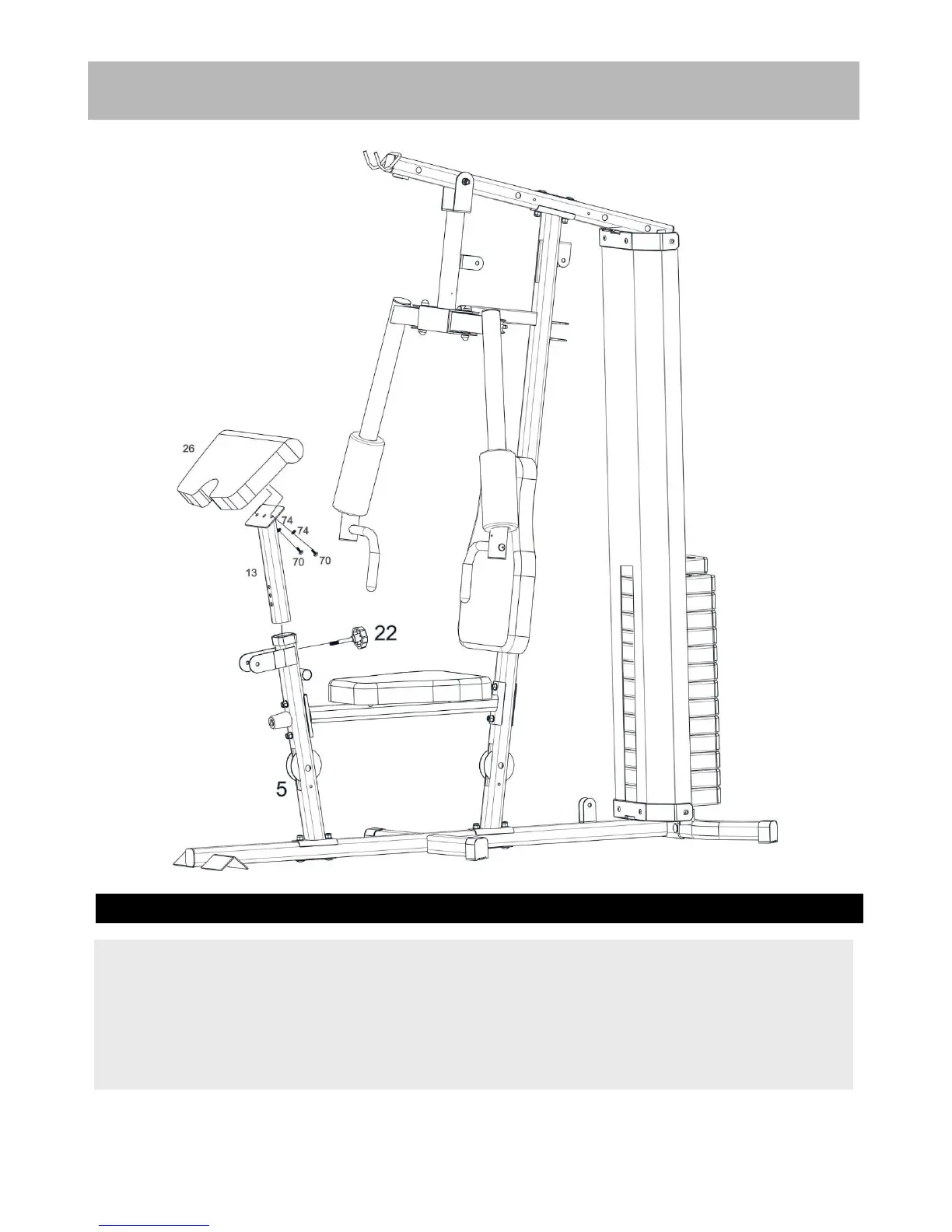 Attach the Arm curl pad (26#) to the support and secure it with 2pcs M8