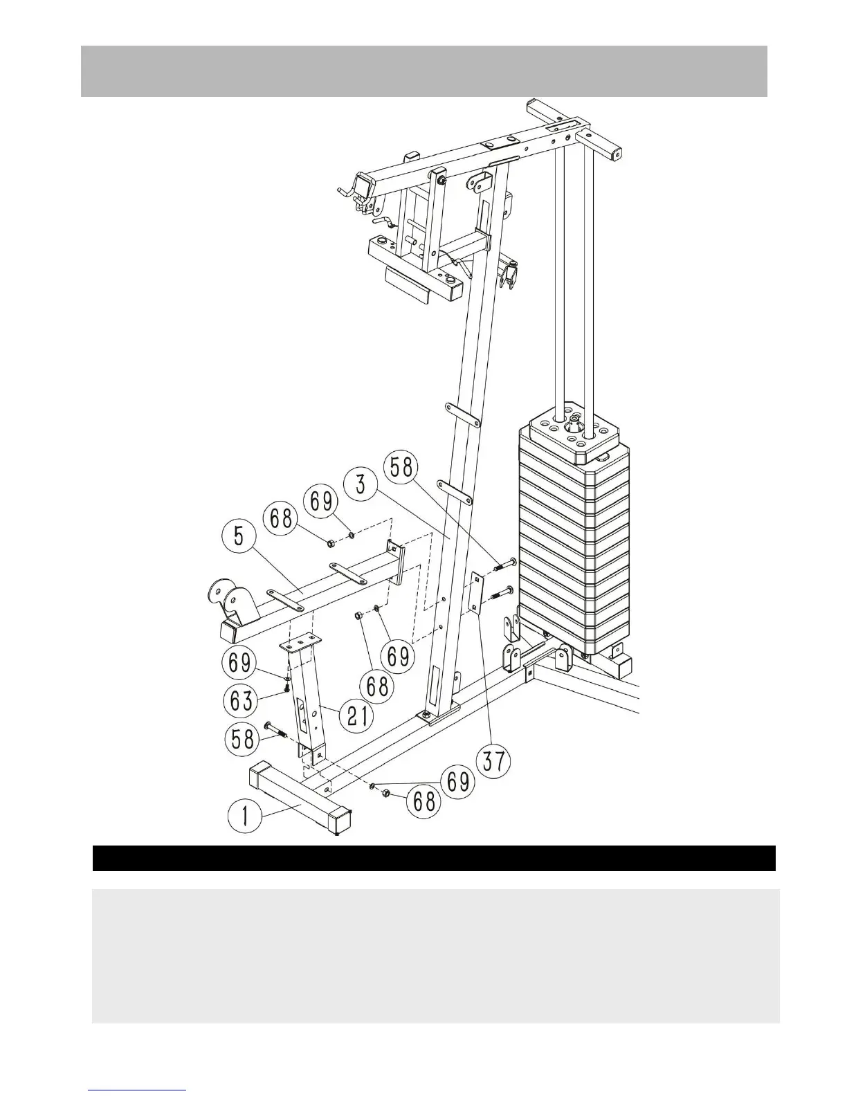a.Attach the Front support (21#) to the base frame and Secure them with 1 pc M10*70 Carriage