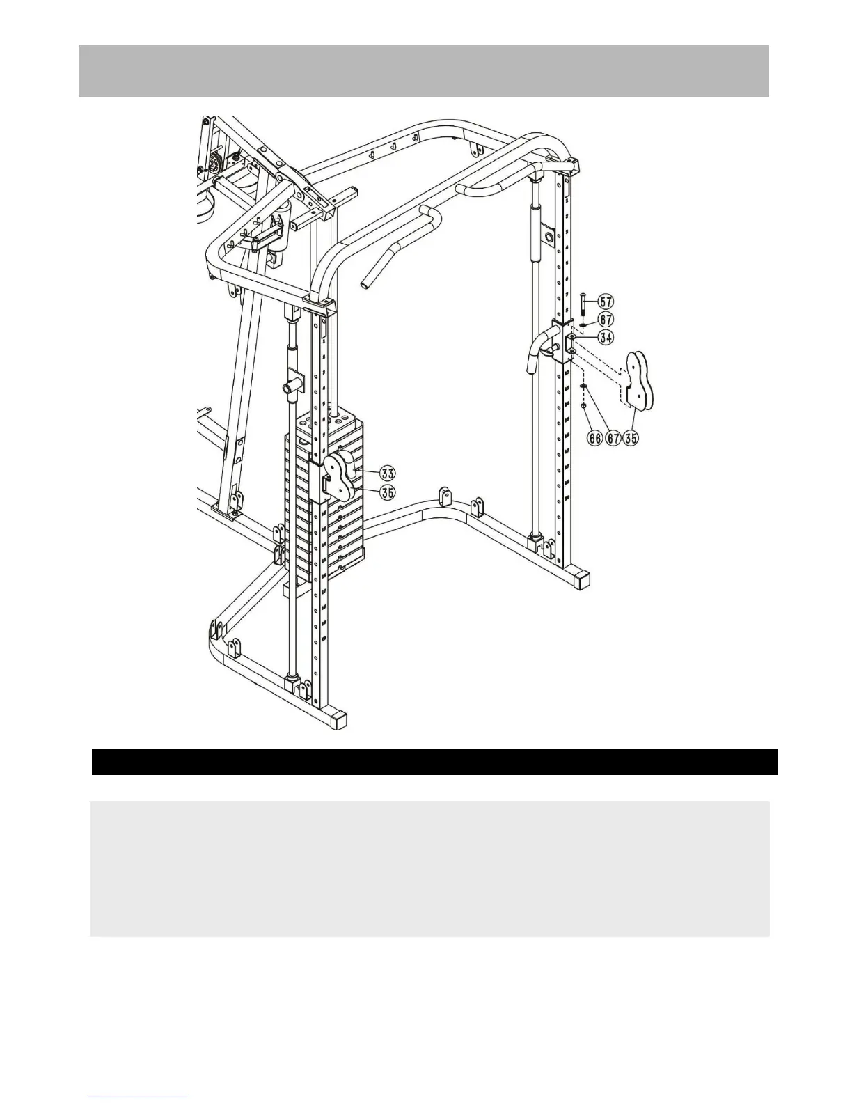 Attach the big bracket(35#) to the right sliding frame(34#) and secure them with 1pc M12X90 Allen