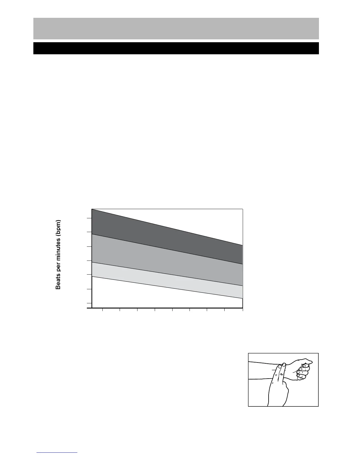 • Monitor your pulse frequently. Establish your target heart rate based on your age and condition.