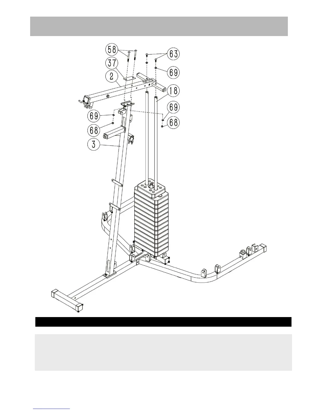 Place the Upper Frame(2#) onto the Front Vertical Frame(3#) and 2pcs Guide Rod(18#), Align the holes