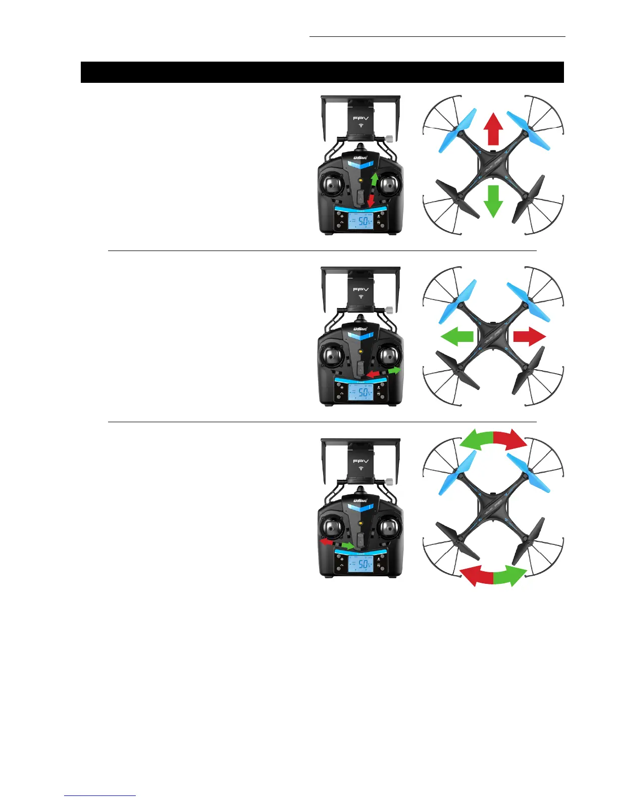 TRIMMER to the left if drone rotates to the right.