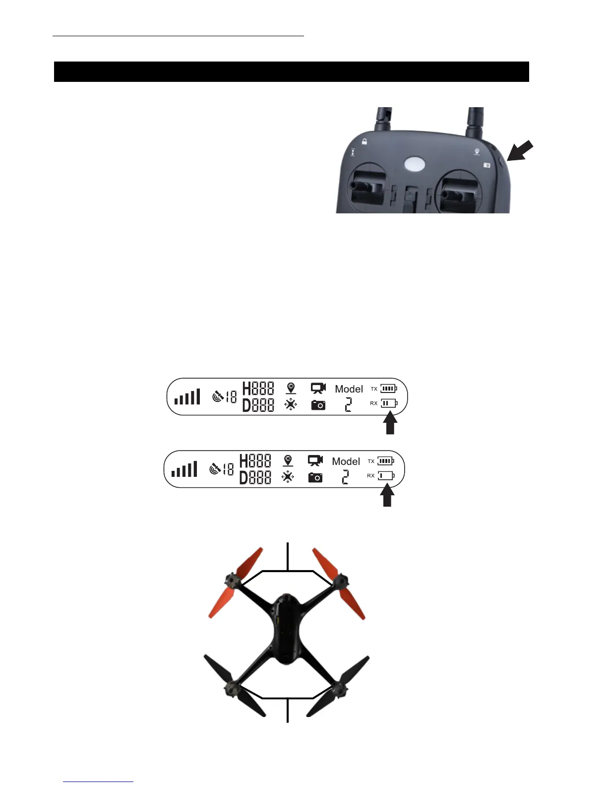 • Low voltage is indicated by the battery icon in Figure 20, and the rear lights of the drone flash rapidly