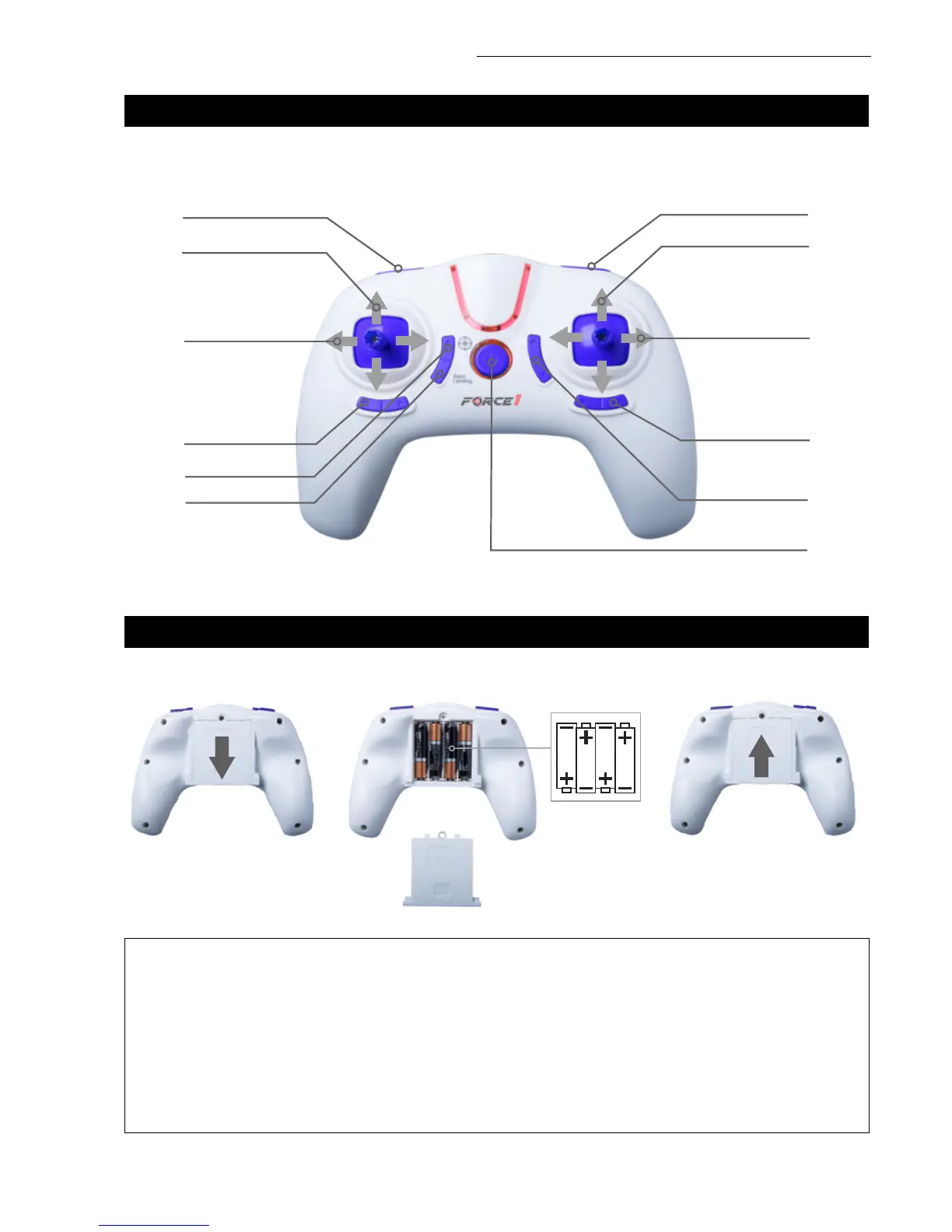 Open the battery cover and insert 4 AAA batteries as shown below (not included).