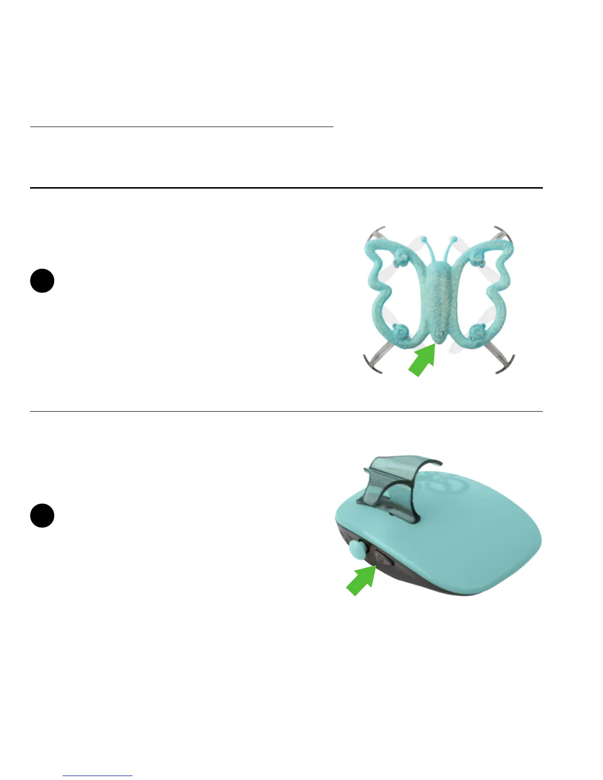 Press button on tail to power on