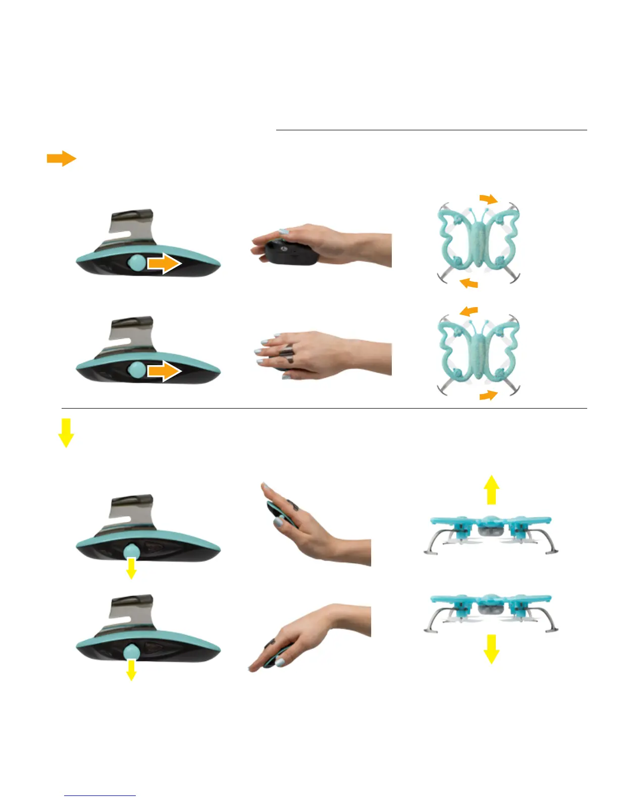 The drone changes altitudes with coordinated palm and joystick movements. Hold the Master