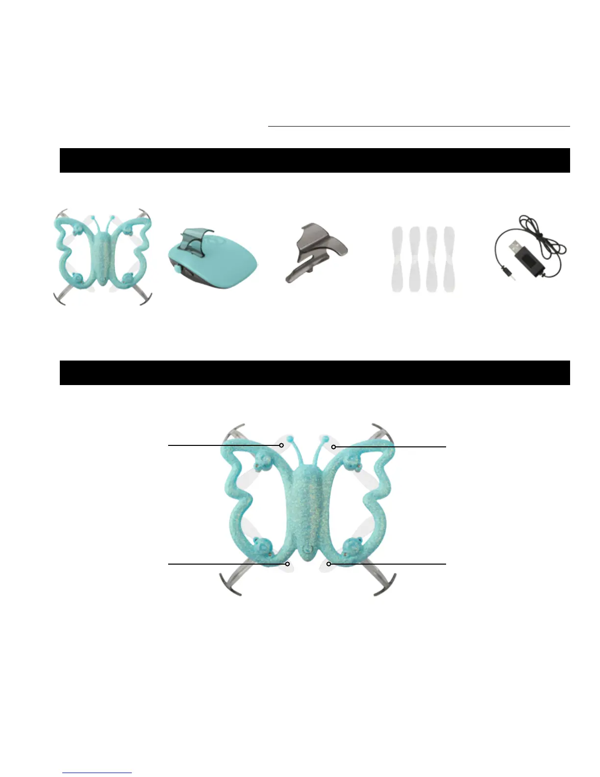 DRONE EXTRA FINGER GRIPPALM TRANSMITTER SPARE PROPELLERS (4) USB CHARGER CABLE