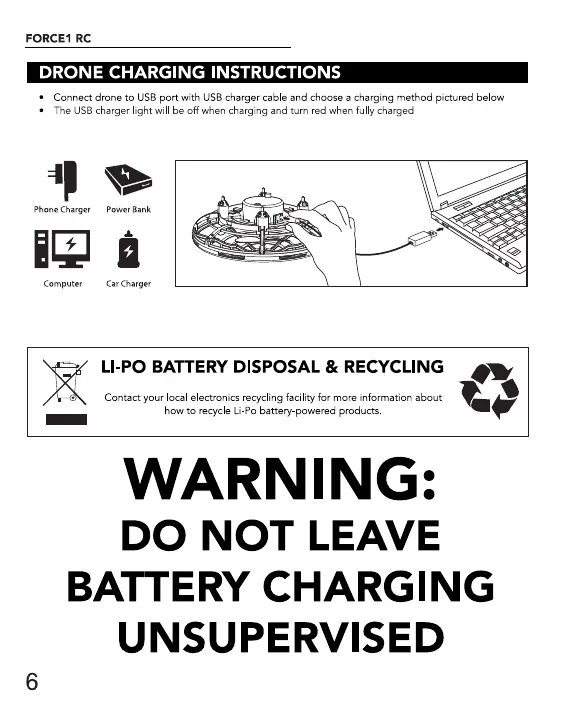 Force1 Scoot - Drone Charging Instructions; Li-Po Battery Disposal & Recycling