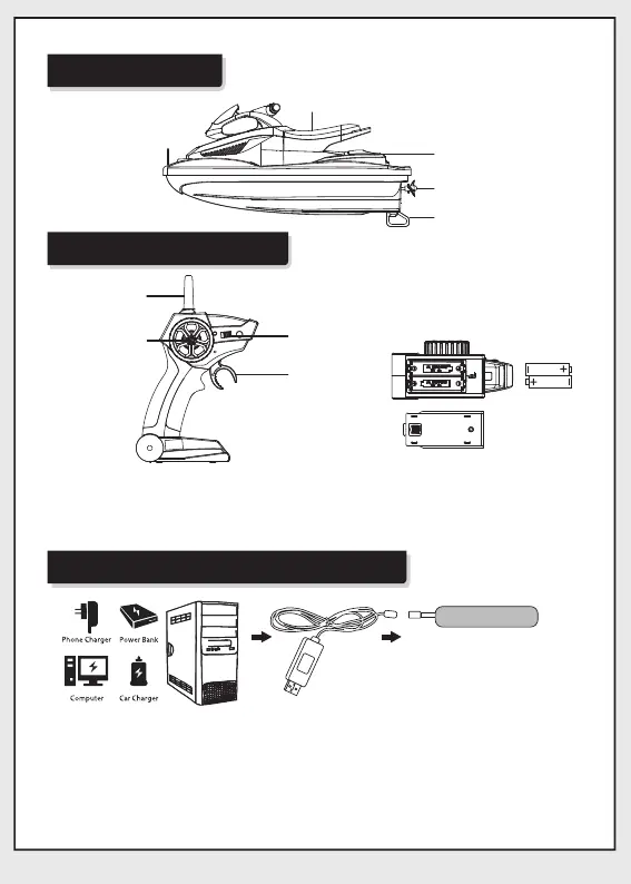 1. Plug the boat battery into the included USB charging cable.