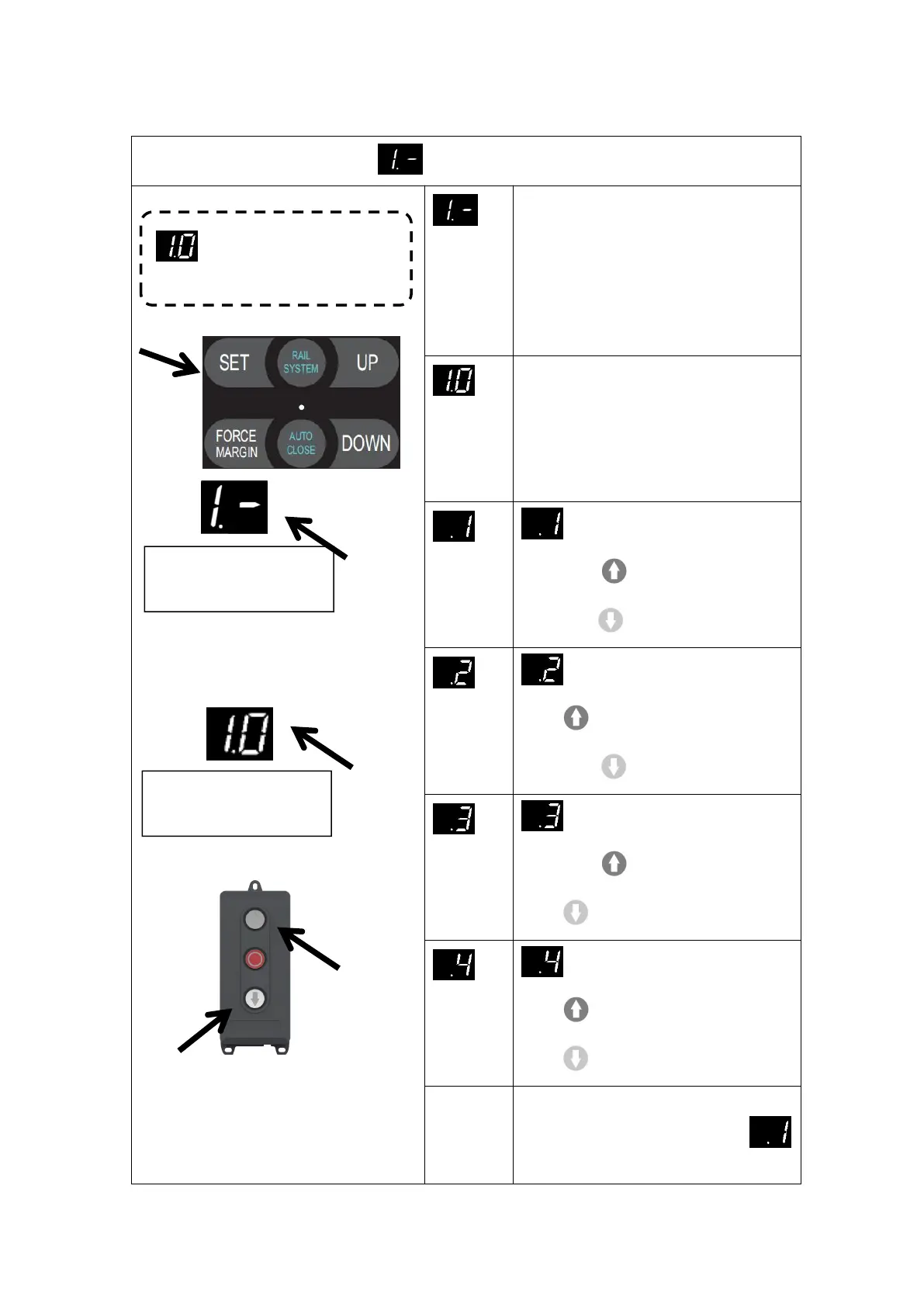 Press UP till “1.-” appears on the