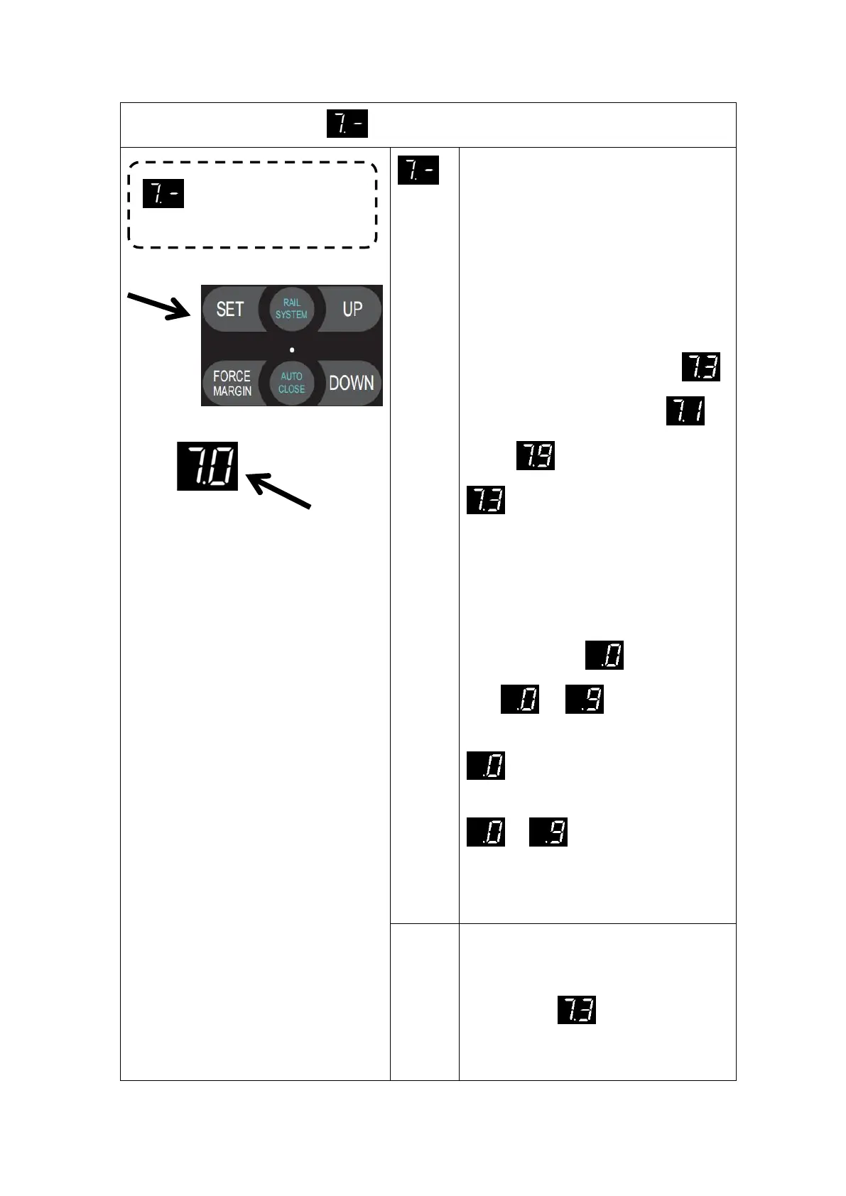 Press UP till “7.-” appears on the