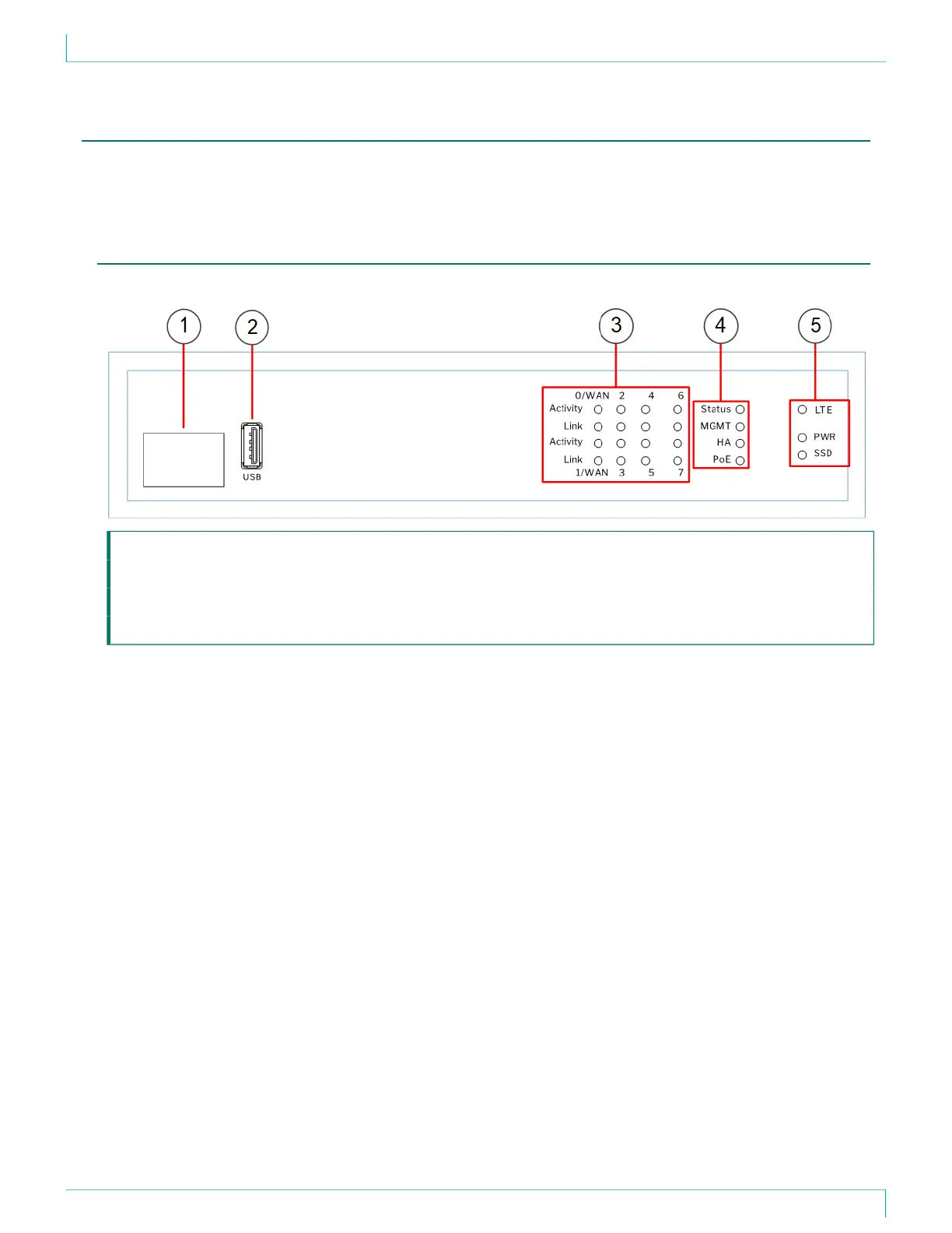 4 Indicators for status, management (MGMT), high availability (HA), and power over Ethernet (PoE)