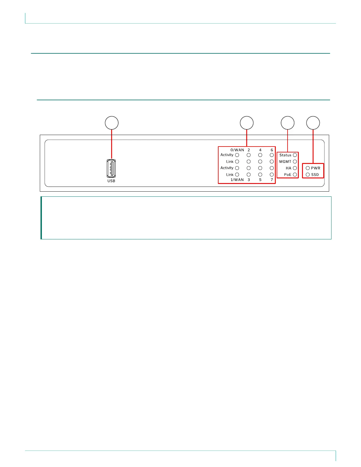 3 Indicators for status, management (MGMT), high availability (HA), and power over Ethernet (PoE)