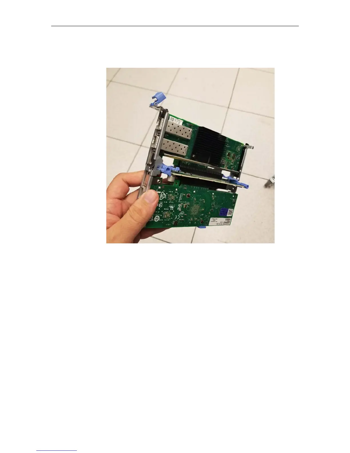 bracket closed for the E1/E2 card, and the riser is ready to be reinstalled in the