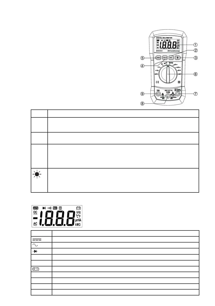 le déclencheur. Cette touche vous permet de commuter entre courant DC/AC, diode /