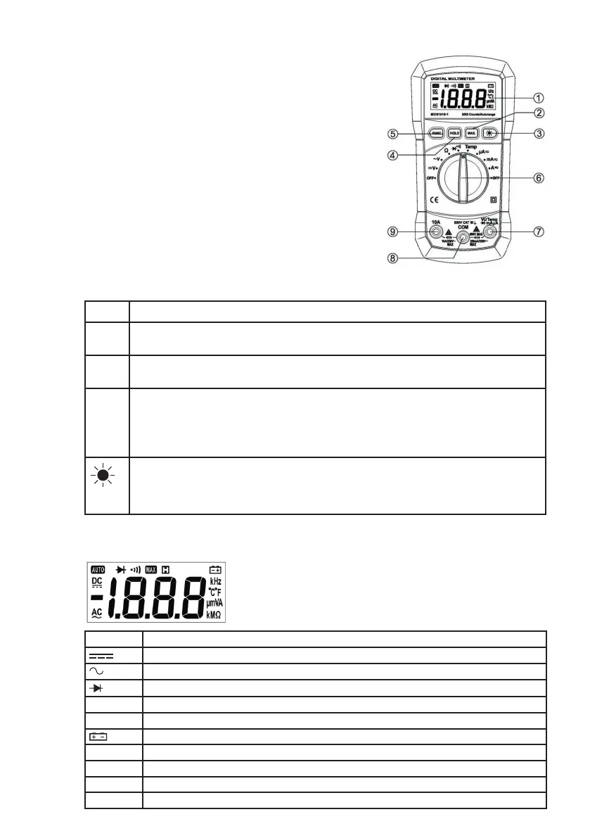 Ha a gombot több mint két másodpercig lenyomva tartja a háttérvilágítás bekapcsol.