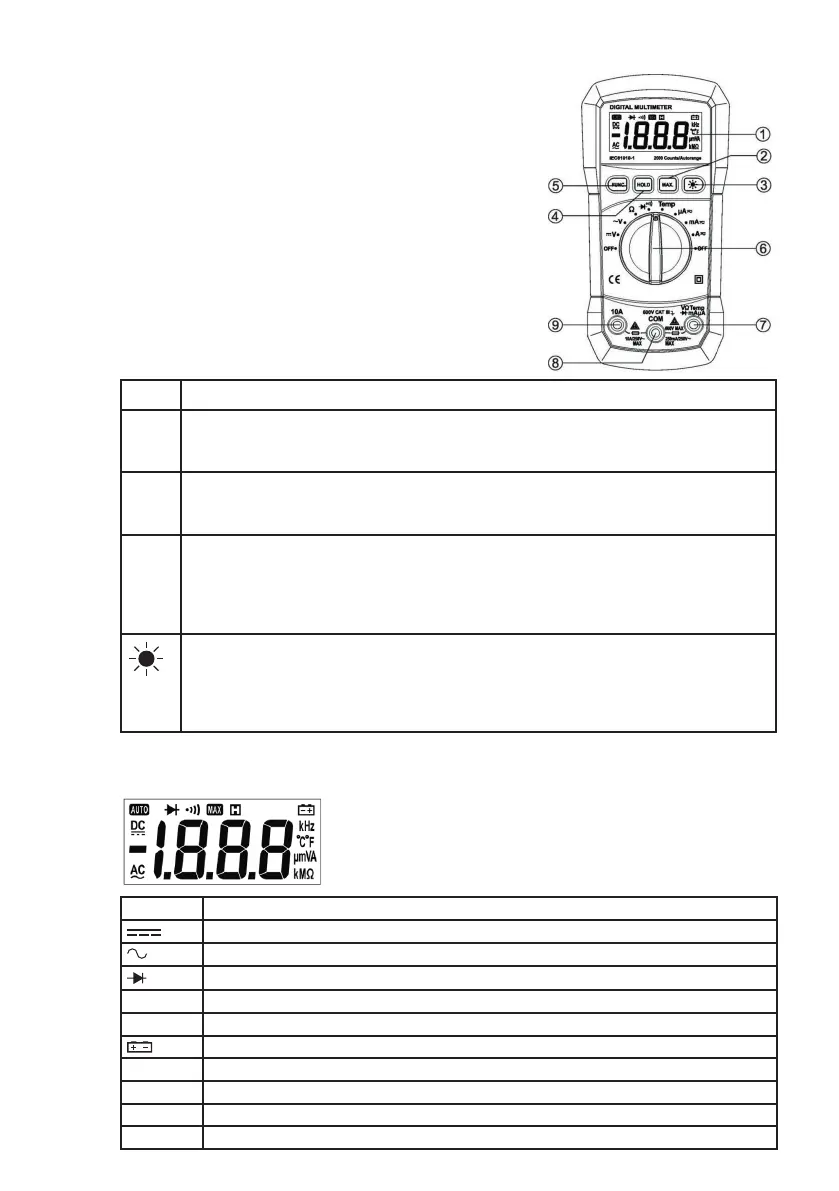 HOLD Pulse el botón „HOLD“ para retener el valor mostrado en cualquier modo de oper-
