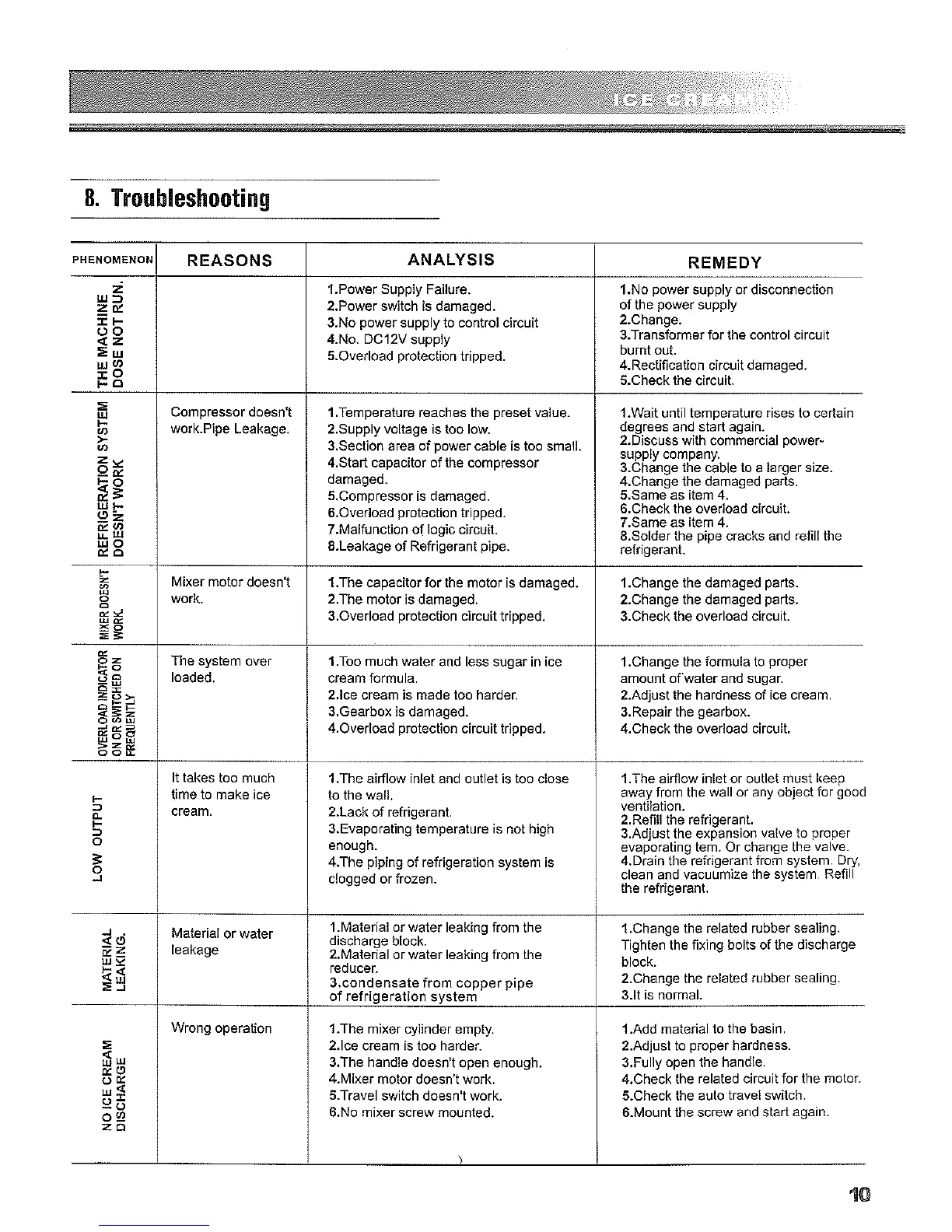 Forcool BQL-S22 - Troubleshooting; Machine Does Not Work; Refrigeration System Issues; Mixer Motor Problems