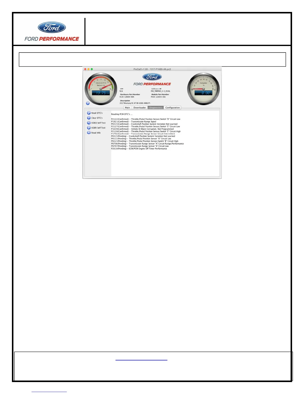 performance calibration. Write down or copy and paste displayed codes and contact the Ford