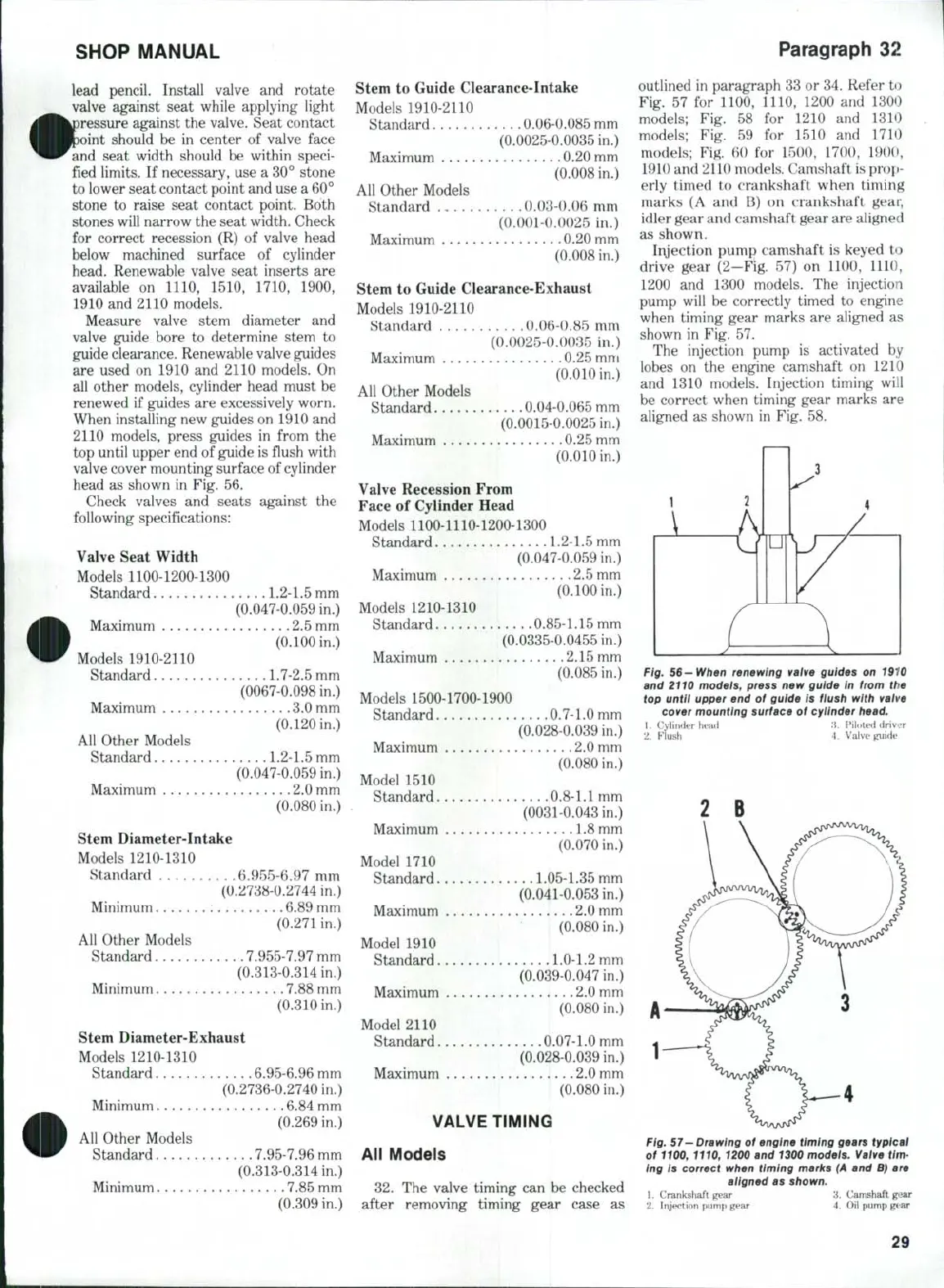 1110, 1200 and 1300 models. Valve tim-